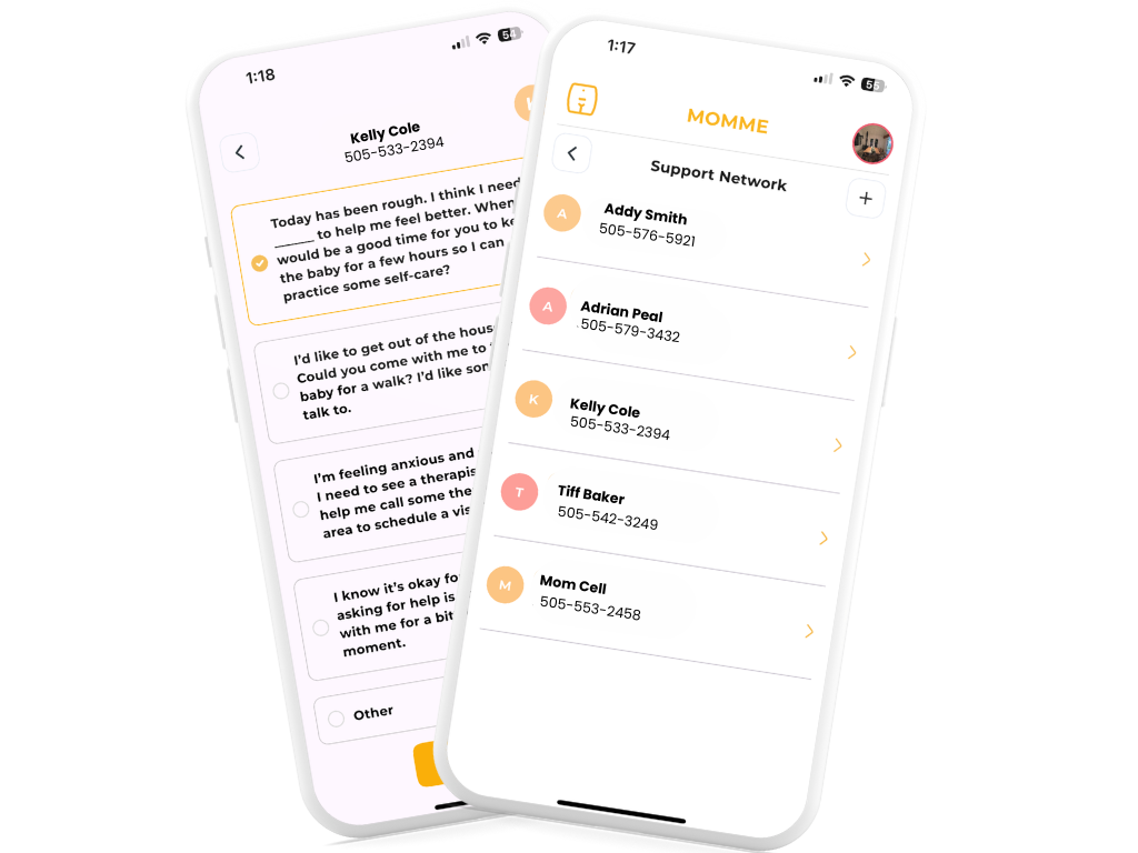 Connect with other moms who are also on this journey, build and reach out to your personal support network (we’ve written support prompts to make “asking for help” easy), and connect with your healthcare providers directly from the app.